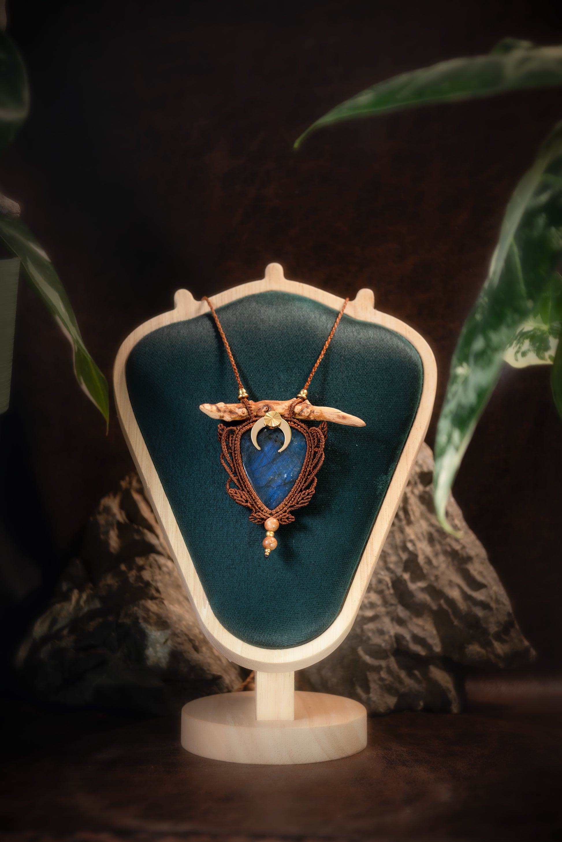 Inspiré par l’union du ciel et de la terre, Auralis marie la labradorite aux reflets mystiques et la racine de bruyère. Un talisman où la lumière rencontre l’ancrage, guidant l’âme entre intuition et force sauvage.