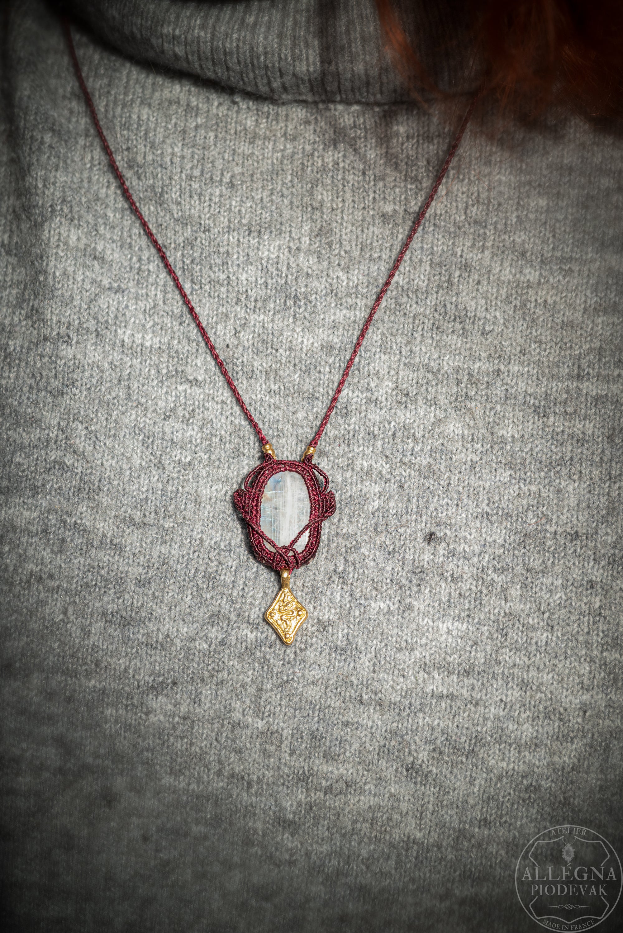 "Soleil automnal" collier micro macramé et labradorite