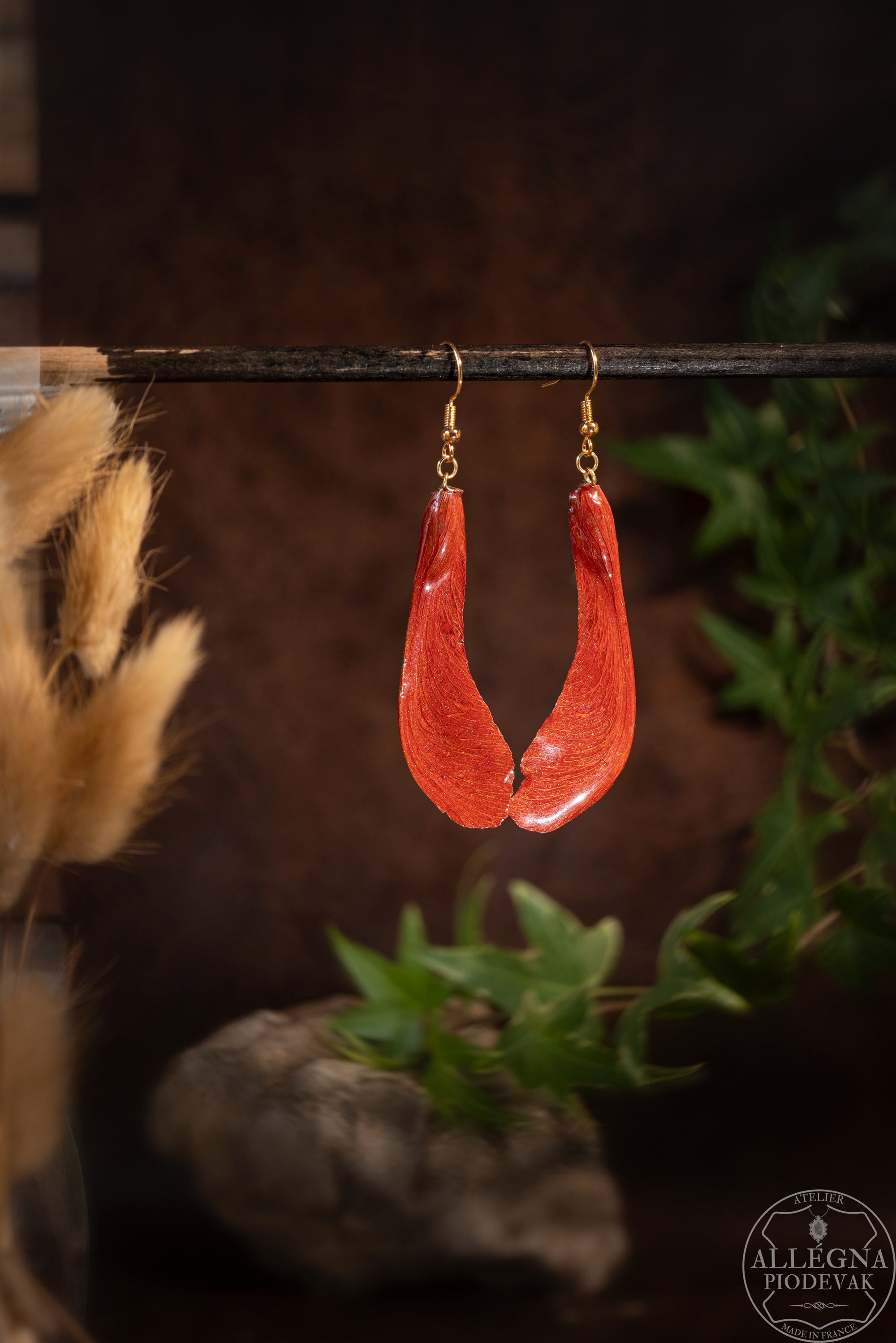 Boucles d’oreilles en samares peintes, inspirées des forêts elfiques. Légères et poétiques, elles célèbrent la magie du vent et des arbres.