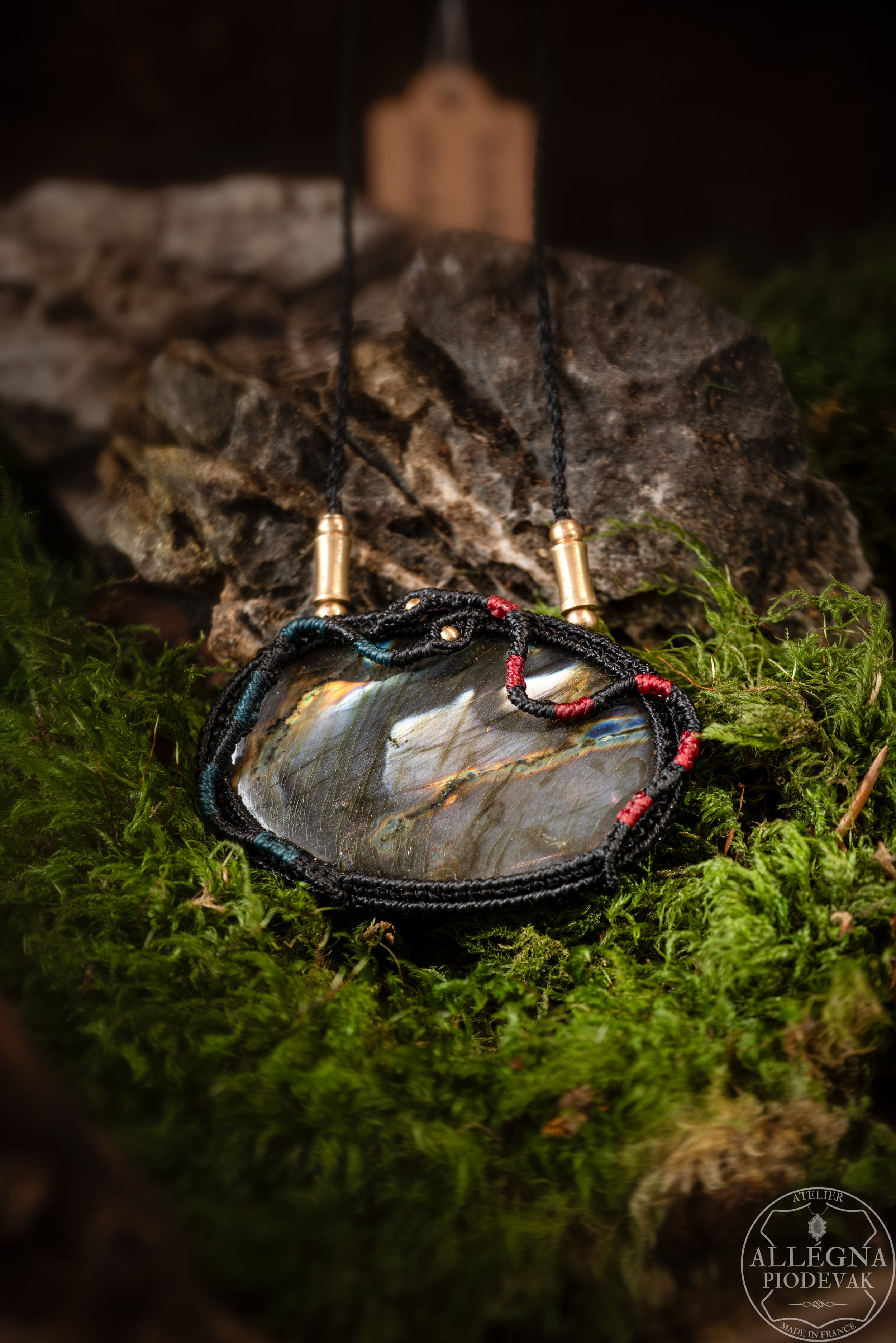 Un collier talisman inspiré par la puissance et la sagesse du serpent, illuminé par une labradorite mystérieuse.